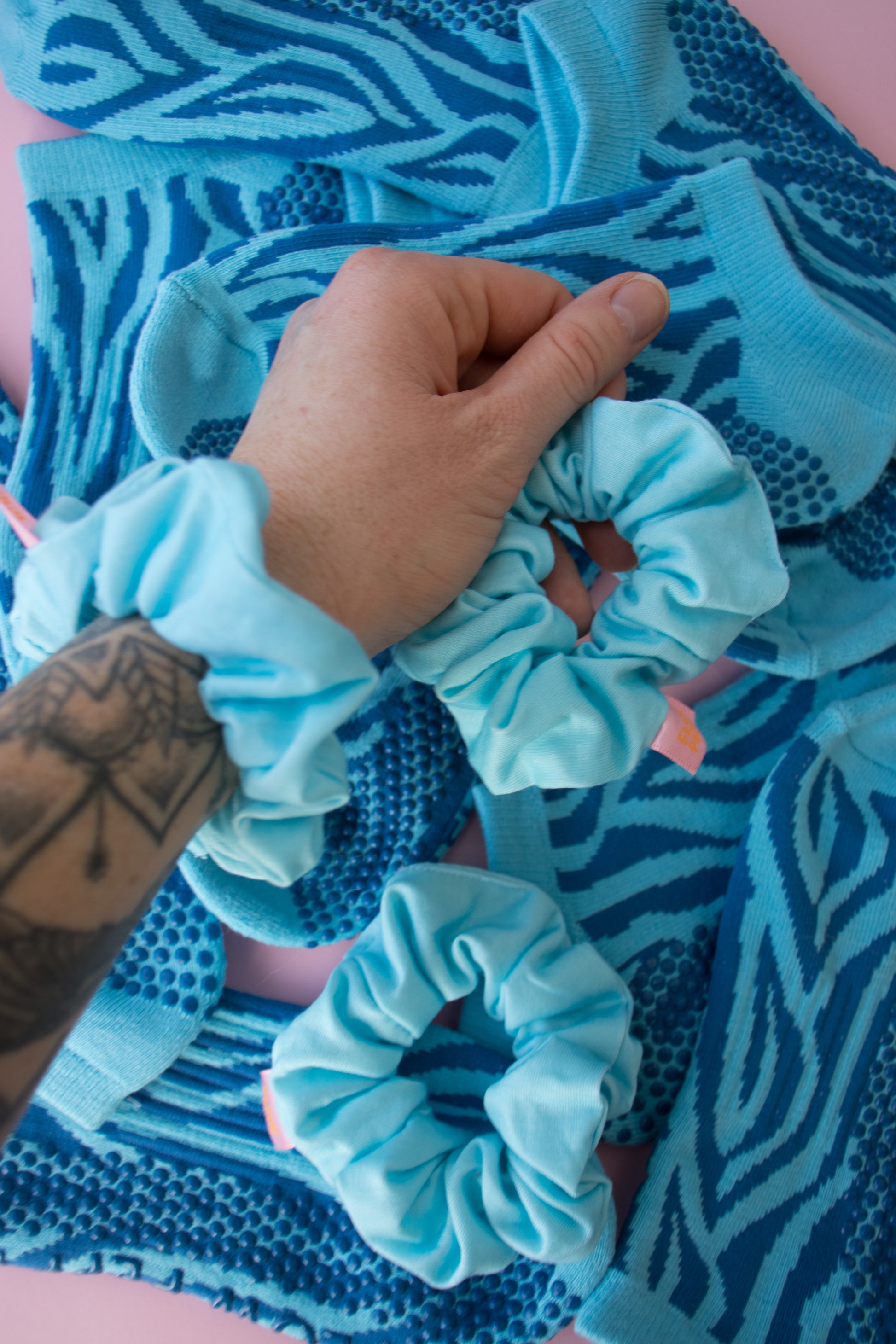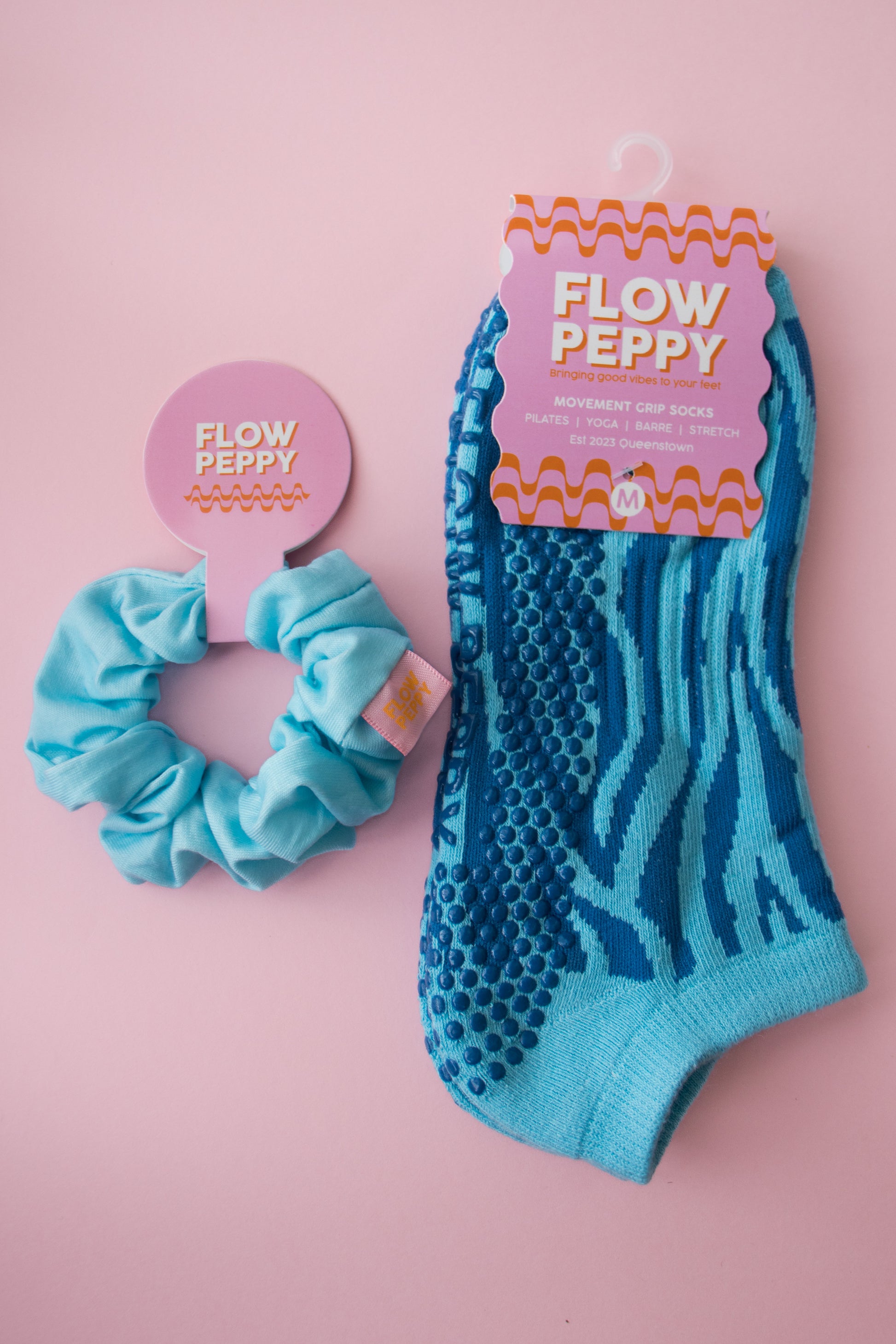 Bringing the good vibes to your feet and your hair with our playful Peppy's. This set pairs the vibrant Bliss ankle sock with the stunning blue Peppy scrunchie, the ultimate duo for matching your energy from head to toe.