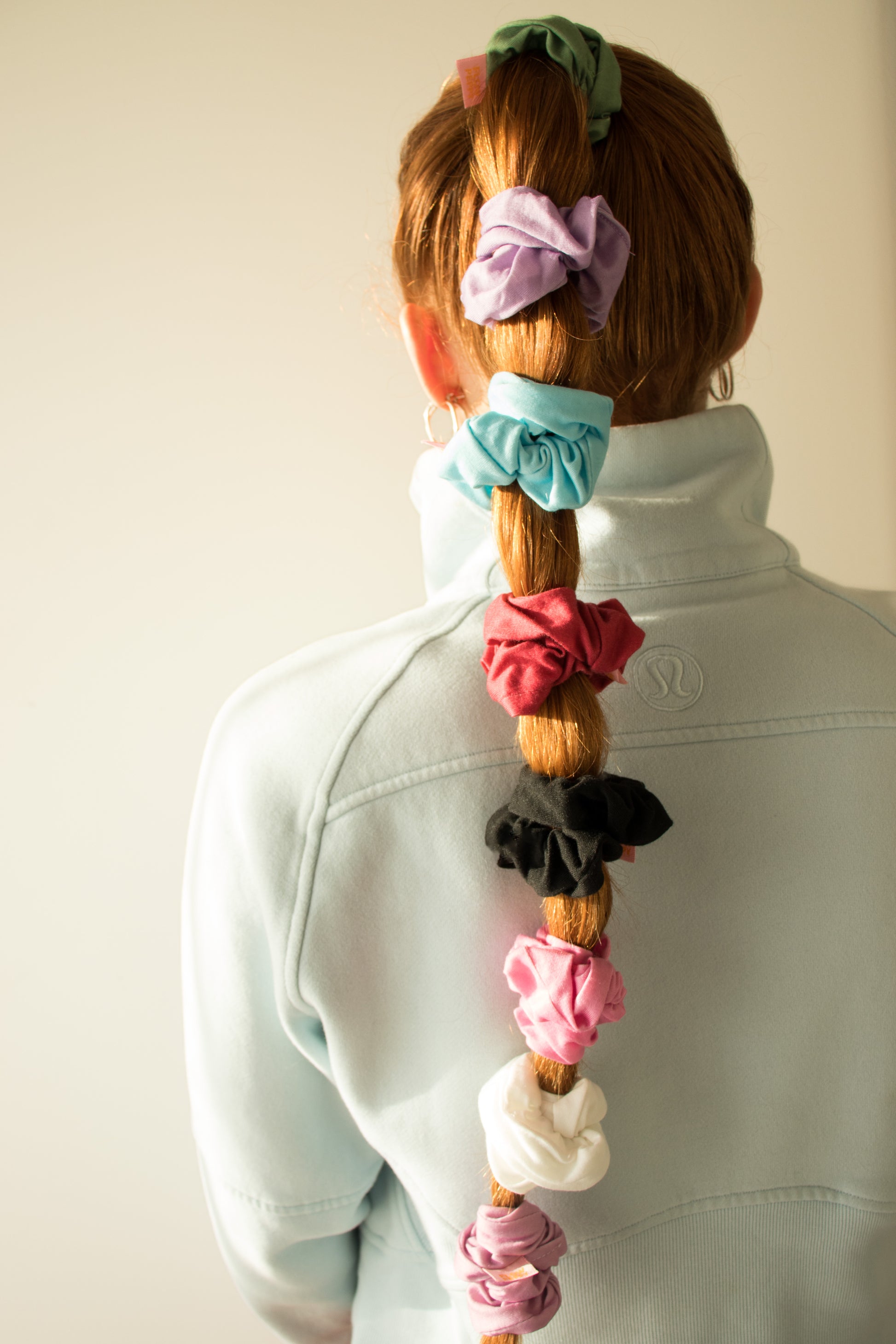 Pink + Red + Purple + Blue + Green + Black + Mauve + White Peppy Scrunchies.