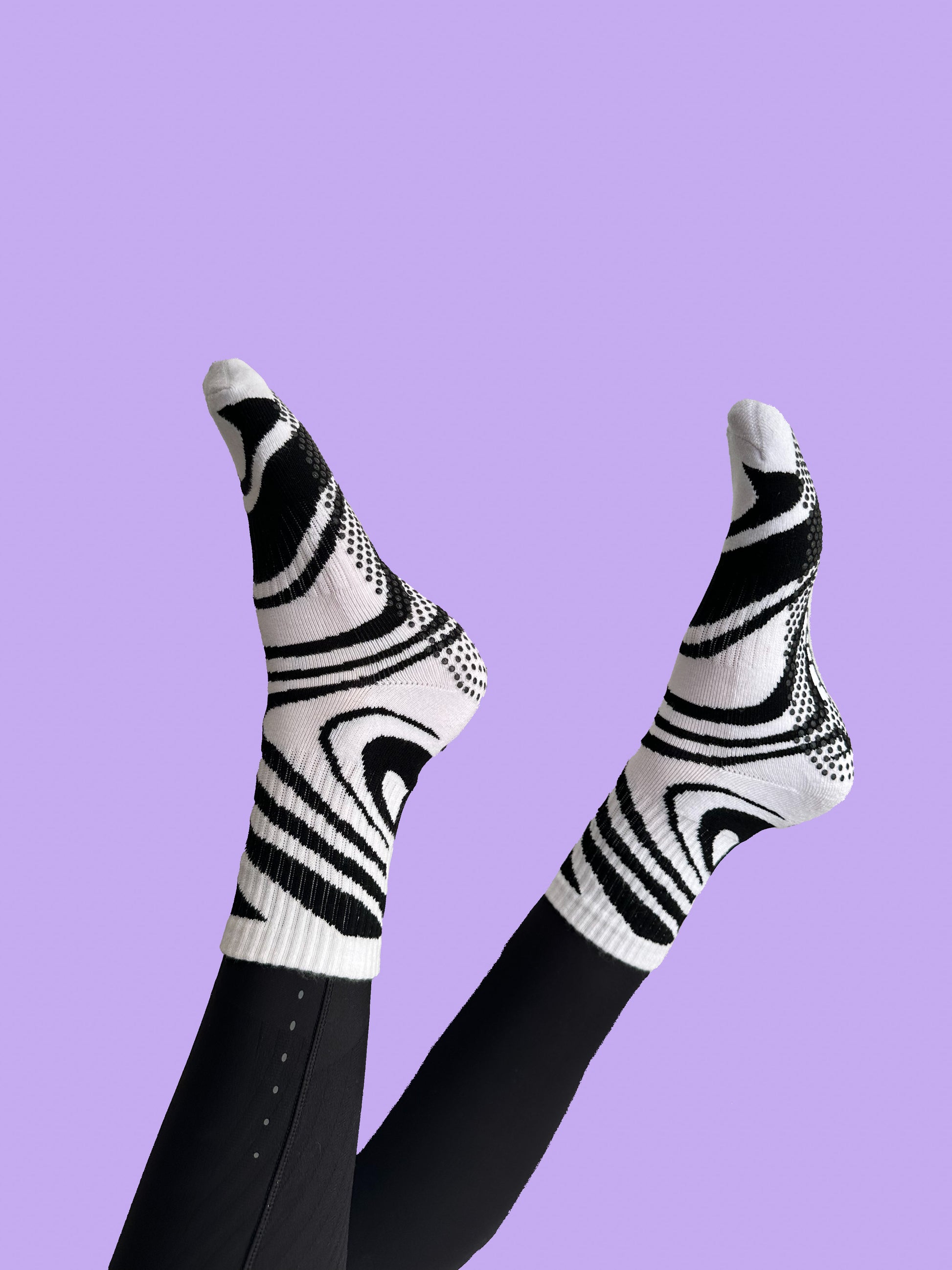 These socks are 95% flawless — same bold designs, same comfy fit, same signature style you love — but with a tiny 5% of grip placement that didn’t quite meet our picky standards.