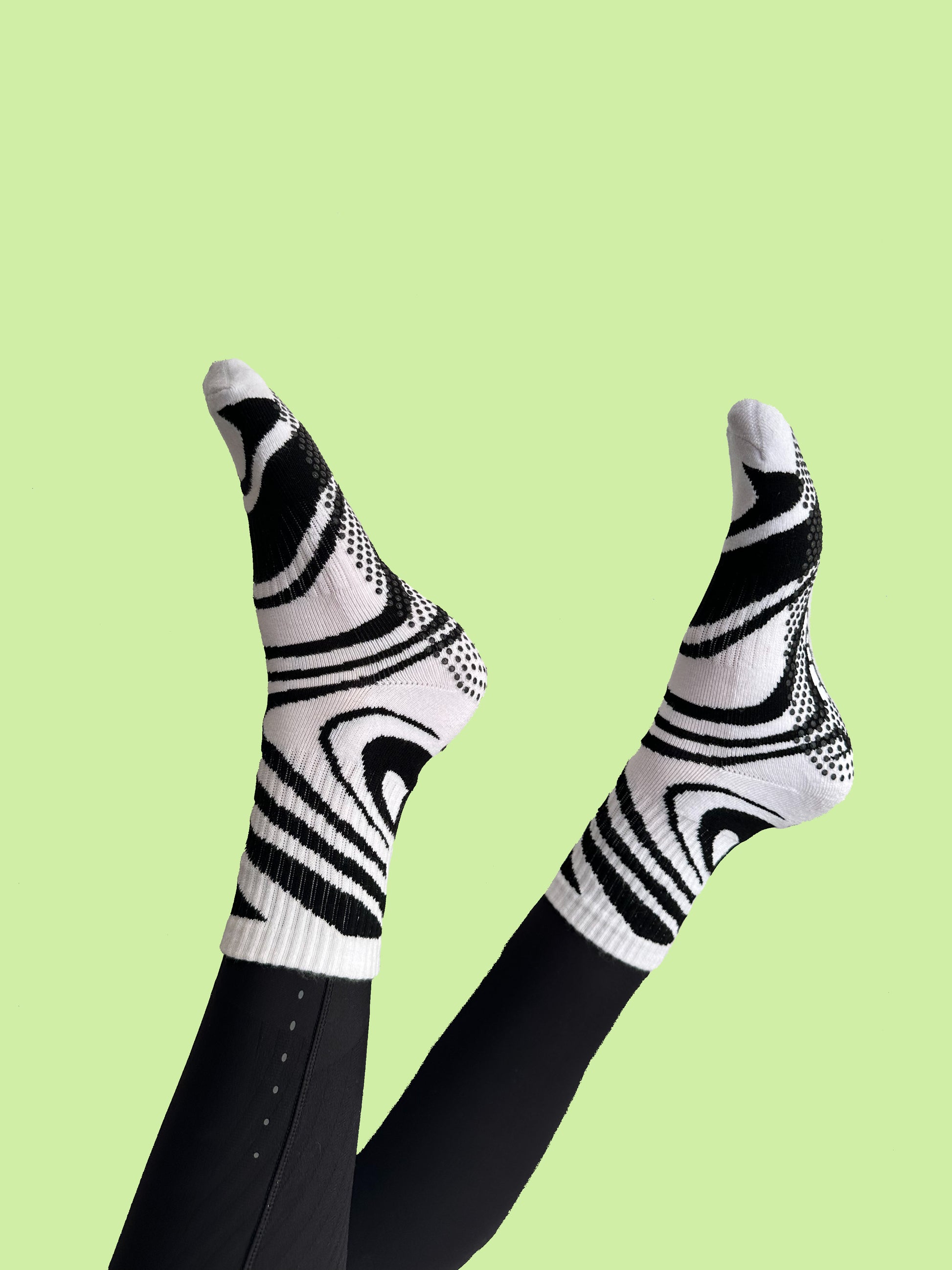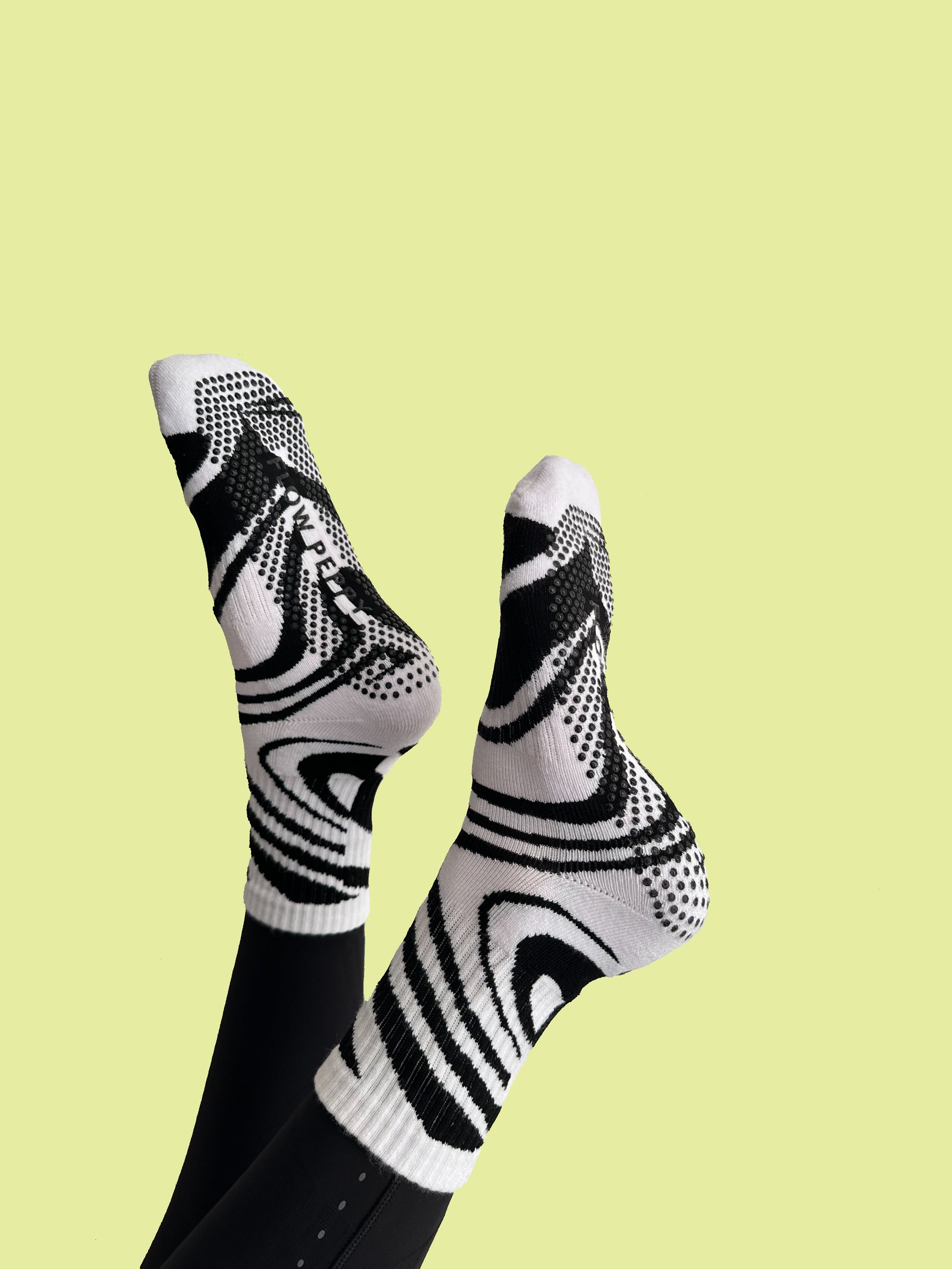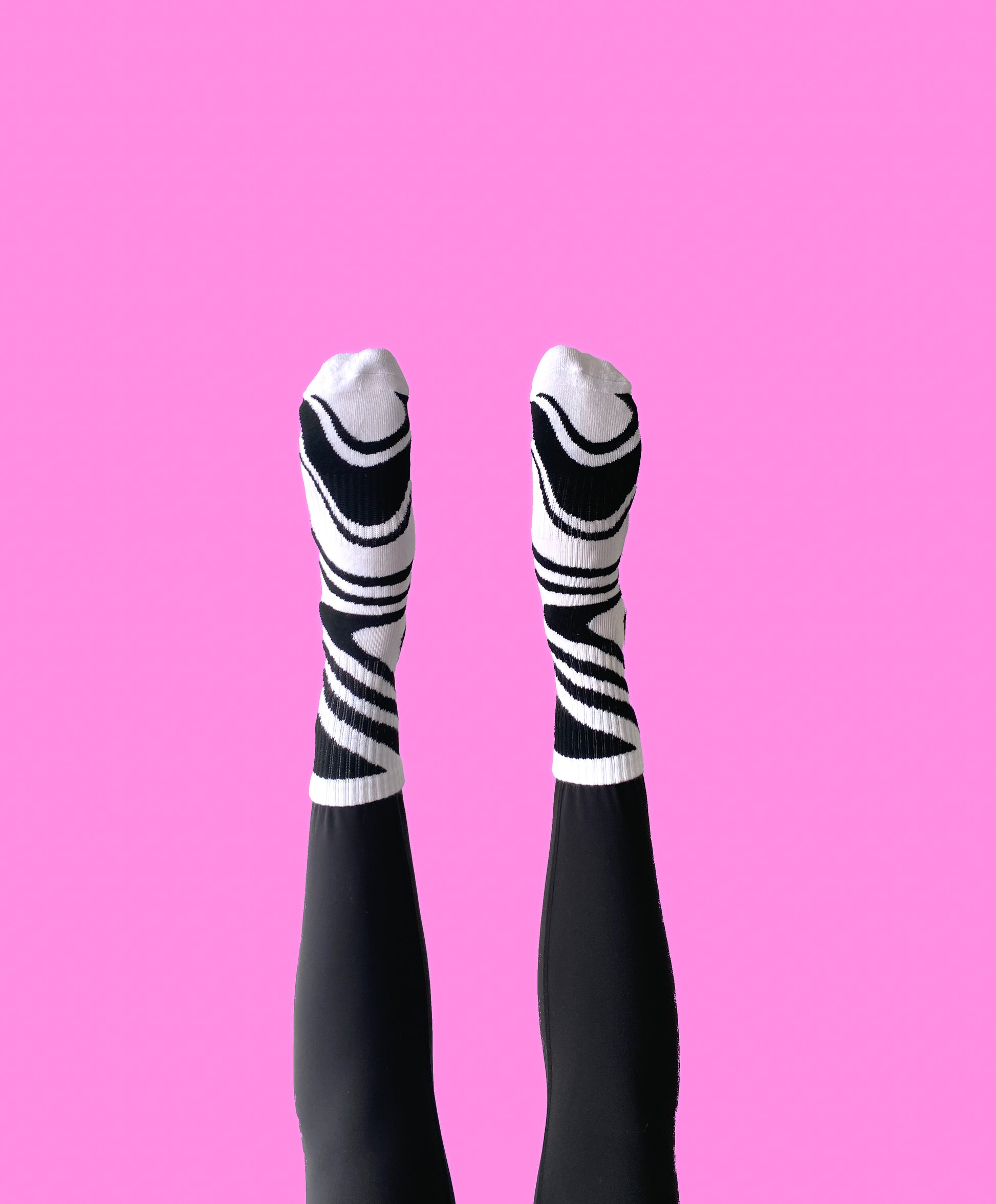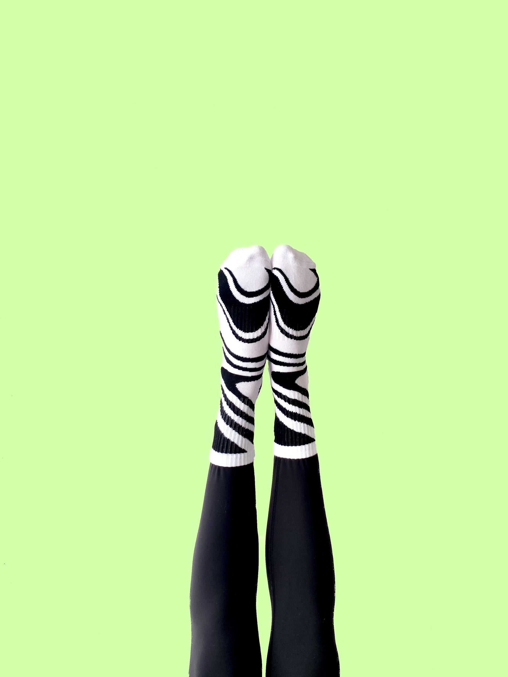 Meet the newest member of our REV collection, a mid-crew sock with a crisp white base and rebellious black lines, loud and wildly bold. Inspired by the beautiful chaos of scribbled lines that refuse to be tamed, this sock owns its wild, eye-catching energy with every step.